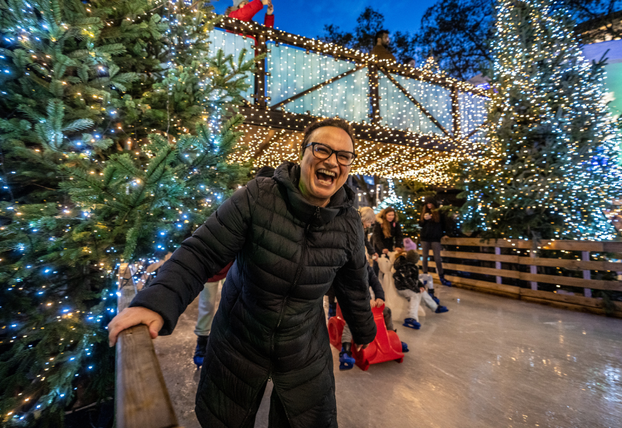 For safety reasons, you are not allowed to take photographs whilst on the ice. However, spectators can take photos from the viewing platforms around the rink.